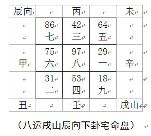 此宅属于八运建造,其宅命盘和风水平面图如下:
